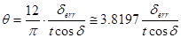 With the drift method we have a means of detecting declination drift for each polar alignment axis. The question here is: “Can I determine the polar axis misalignment given an accurate measure of the declination drift?” The answer is: Yes! Hook showed that the declination drift was related to the angle of alignment error as follows: