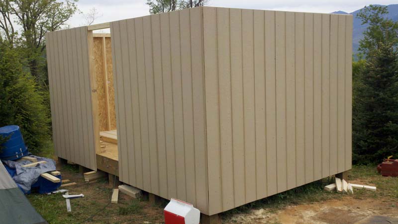 5/7/11: Most of the siding is in place. Like a dunce I went and left my ladder at home, so I was not able to put up three panels in the southwest corner due to their height and my decreasing energy level.